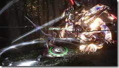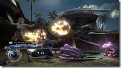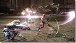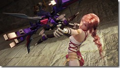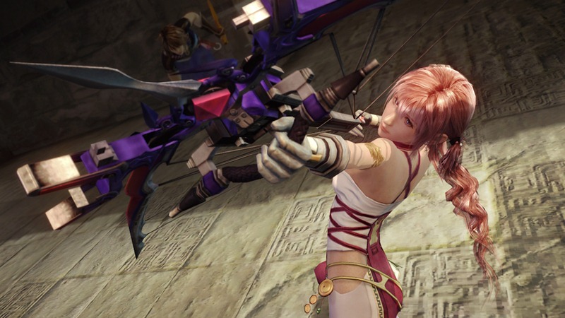 Mog can transform into a bow and sword, weapons Serah uses to fight monsters. The sword is Serah’s close range weapon and can launch enemies in the air. As a bow, Mog and Serah can hit enemies from far away.