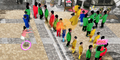 Just looking at the above image doesn’t really help, so imagine those different clothed people as balls and you’re in the middle throwing other balls in this hectic match-3 puzzle game, as they’re closing in on you. Now back to the reality we call Tokyo Crash Mobs, where they’re not balls but digital human sprites we’re throwing instead!
