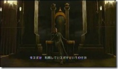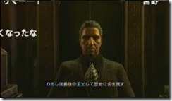 Update: Pictures of the mysterious man in the suit who makes the king comment and some gameplay screenshots. Regarding the quote, it appears the "suit character" is being merciful with his decision to end the linage. Text, in English, read "an act of love by the last king."