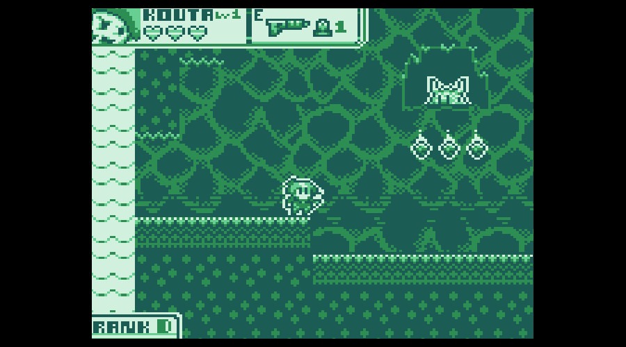 An evil villain means to take over the world with a powerful weapon, but luckily, a teeny tiny ninja with a teeny tiny shotgun is out to stop him in Game Boy platformer Lofso Koutaro’s Course.