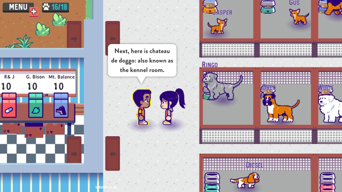 The dogs themselves come in a lovely array of breeds, with generated names, traits, and preferences. The only trouble is that those types don’t really end up affecting things all that much. It’s fairly simple to arrange the dogs with similar food preferences together, but keeping difficult or violent dogs separate may be challenging. The actual adoption process is also not especially strict. You simply pick five dogs to display and, if their collective adoptability rating overcomes the visitor’s reluctance, then a dog is adopted. Though visitors have their preferences, you can often overpower them with a display of decently clean, well-fed dogs. When you have upwards of 20 dogs to look after, then that simplicity can be a blessing, but it also means you don’t have to engage that much with the trait system or the dogs in general. Rather than getting to know all these little friends with their funny little names, you feel incentivized to get them clean, fed, and out the door. Again, probably like a real dog shelter, but it does make it a bit disappointing mechanically. I also had some issues with poorly explained mechanics and controls indicated by very small icons. I spent a good while unable to pick up any items, because I’d locked myself into leashing mode with an accidental press of the thumb stick and didn’t notice the small UI indication as I flailed about trying to take care of all my tasks. The frequency of visitors was also a factor, as I assumed that like other business sim games you would have a limited time to serve them. Not so in To The Rescue, as potential adopters will happily wait in your lobby all day until you are ready to showcase some dogs. Upgrades like extra item slots and more leashed dogs at once helped quite a lot, but honestly it was this revalisation that made the game much more manageable, and it isn’t explained. There are also quite a few bugs and glitches. Beyond things like the game screen popping up before it had properly loaded or being unable to interact with dogs, there were also system errors and crashes. During the tutorial, I was tasked with moving a certain dog to a new kennel, but doing so didn’t progress the task. I eventually fixed it by placing a different dog in that kennel, one who happened to have the same name. I also experienced the menu selection plip disappearing several times, only coming back after opening and then closing the start menu. There’s definitely satisfaction to be had in keeping on top of the endless influx of visitors, furry friends and the accompanying mess, but the game is mechanically far less sentimental that you might expect. If you like shop management type games then To The Rescue! is a good time with a lovely and pretty novel theme, but those looking for specific focus on the canines might find themselves disappointed. To The Rescue! is available now on Nintendo Switch and PC or Mac via Steam.To The Rescue Is a Messy and Hectic Dog Shelter Simulator