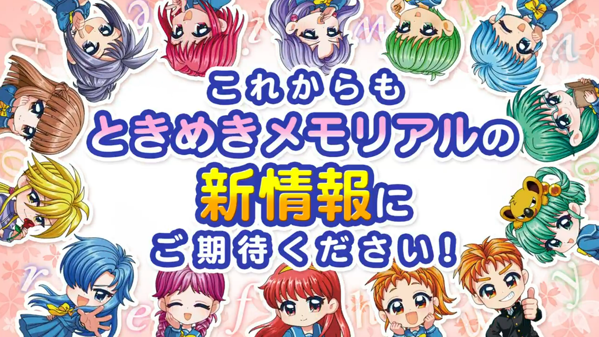 Furthermore, a video including the same text was included with the post. Various key characters from the first Tokimeki Memorial game appear on it, as well as an instrumental version of the opening theme song of the Tokimeki Memorial: Forever With You updated release of the game.