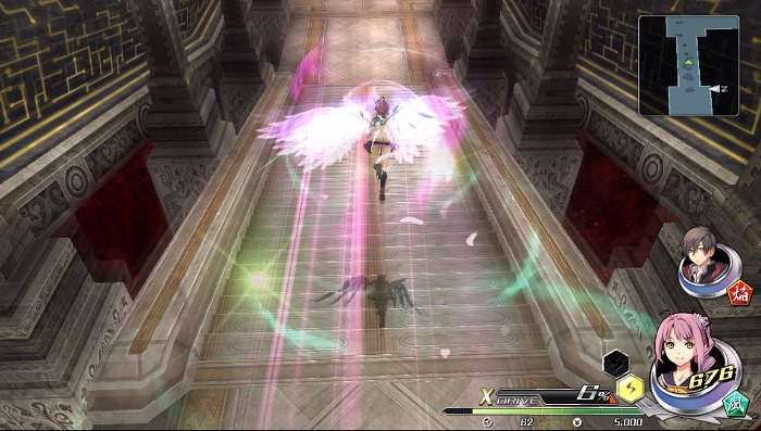 Rion’s Soul Device expands massively, allowing her to freely go around the enemies at super speed while attacking. Afterwards, she makes it rain down countless homing missiles from the tip of her wing, as her ultimate attack.