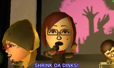 My Mii still hasn’t found love, which is one good thing. I had to remove Cecilia’s Mii completely from Tomodachi Life to erase the Flowers in the Attic situation with her brother’s Mii. Don’t worry, though, virtual Marco quickly moved on to Janelle. But really, I have baby fever. I want to see little baby and kid Miis! I keep checking Japanese blogs, trying to see if there’s any way to hurry these little guys to the altar. Even if the Kyle and Mom Miis aren’t ready, the Caitlin and FILSAMECH Miis have been together almost as long and Reggie’s status page says he’s ready to get married, too. Food for Thought: 1. Almost every female Mii in the game has a 80% compatibility ranking with Miyamoto, or higher, but he won’t settle down yet. I wonder if he’s waiting for Samus? 2. A hot, new, group of rappers, called Top That, are taking Crawford Island by storm. Their latest hit? “Shrink da Dinks” – a moving account of the Shrinky Dink creation process.