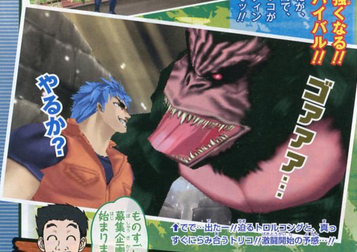 Jump, which first announced the game, says this adventure will take place on Megamori Island. Screenshots show Toriko winding up to punch a giant gorilla creature. The game’s genre is "gourmet hunting action," which sounds like it could be a Monster Hunter style game with Toriko as the main character. That would actually make sense since the manga from Shueisha is all about Toriko tracking down rare animals to cook for dinner.