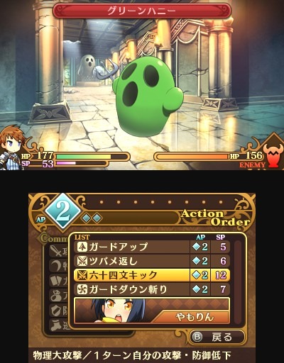 Most of the game will take place as Seed wanders the labyrinth where the tournament is held, hunting monsters, foes and trying to advance his way to the end. Battles, however, are turn-based RPG classics, with some 100 skills to choose from in 1v1 battles to the death. Fights revolve around Action Points, and much like other titles like Record of Agarest War or Bravely Default players can choose to spend their points dealing out massive damage—thereby leaving them defenseless—or hold back a little for the inevitable return fire.