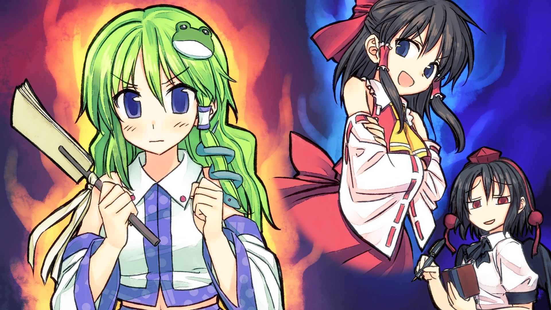 Sanae Kochiya, another shrine maiden who occasionally gets to be a heroine alongside Reimu and Marisa, has a role in Touhou Genso Rondo that plays with her role as being “the other shrine maiden.” She’s determined to prove herself as capable and famous as Reimu. Rather than referencing her relationships with characters, this touches on another part of Touhou Project lore. She wasn’t part of the series until the tenth installment, Mountain of Faith. By giving her this identity crisis, they’re playing with the fact that she’s a “newbie” compared to Reimu and trying to prove herself.