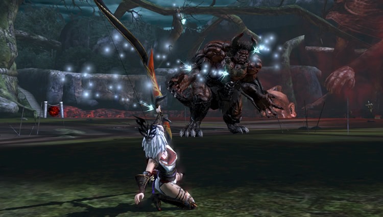 The Bow is the only long range weapon in the game. Players can change the attack power to do either regular or strong attacks. The Curse Arrow skill marks enemies in a circle and locks on to them so you can hit multiple targets on an Oni. This skill also lets the warrior fire an explosive arrow that deals heavy damage.