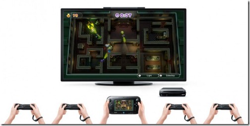 My first stop was Luigi’s Ghost Mansion, simply because it was the first demo station I saw and the Nintendo representative on hand was offering me a Wii Remote. In this game, four Wii Remote holders control ghost-hunting Miis, while the gamepad holder controls the ghost. The Miis have to corner the ghost and shine a flashlight on it, but also have to take care to not be attacked by the ghost who can tag them, making them faint. If a Mii faints, the other Miis have to use light to revive him or her. The goal for Miis is to catch the ghost, while the goal for the ghost is to make all Miis faint. In my play session, the ghost won.