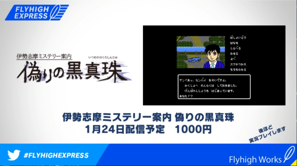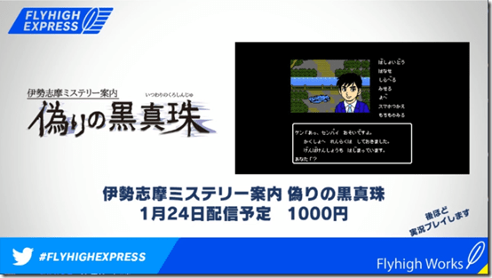 The second game in the F series of card games by Esquadra. The ‘.net’ represents the fact that it can be played online. The game is set to come out digitally on Nintendo Switch on January 17, 2019. Ise-Shima Mystery Guide: The False Black Pearl