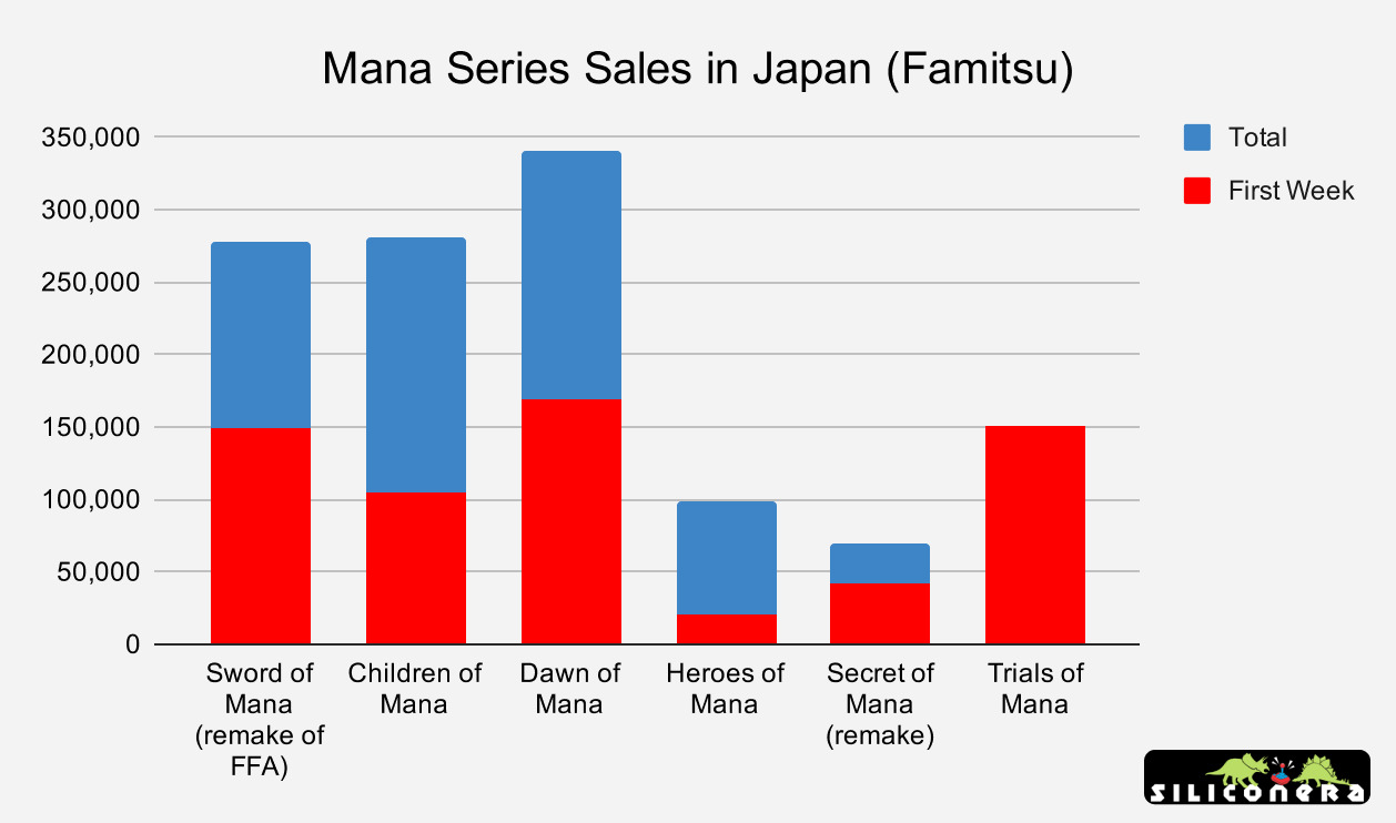 The chart above is sorted in ascending order of sales. As it highlights, Trials of Mana has launched higher than just about any other “AA” RPG by Square Enix this past decade. (The only game it couldn’t beat was Nier: Automata.) Again, development budgets varied greatly between the games listed, so sales don’t tell the whole story, but things are looking good on the surface. It is important to note that, like the games above, Square Enix likely produced Trials of Mana on a fairly reasonable budget. The game was developed by an external studio (Xeen) and overseen by Square’s “Creative Business Unit 4” department, which is largely responsible for mobile games such as Final Fantasy: Brave Exvius and Schoolgirl Strikers 2. The Mana series appears to be the only console franchise Creative Business Unit 4 is responsible for, which makes it likely that Square didn’t exactly break the bank on development. If Trials of Mana continues to do well over the next few months, it could give Square Enix reason enough to greenlight a new, original game in the series—especially if sales in the west meet its internal expectations. Seeing where its global sales end up should be interesting. Sales data sourced from Famitsu and Game Data Library. Note: In an earlier version of this story, lifetime sales for Star Ocean 5 weren’t correctly updated. This has been rectified.