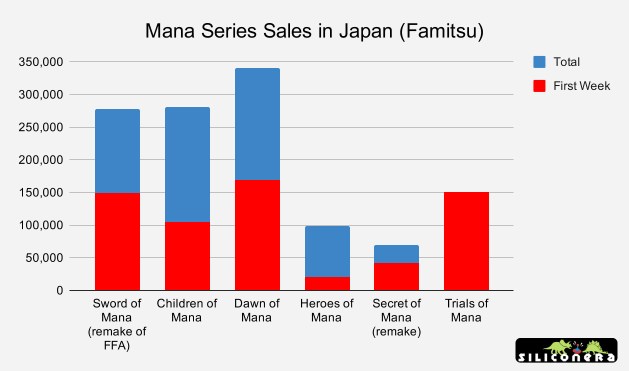 Last week, Square Enix released Trials of Mana, a remake of its SNES action RPG, Seiken Densetsu 3, in Japan. The game sold a respectable 150,497 units at retail stores in its first week (with 80,383 units sold on PS4 and 70,114 on the Nintendo Switch). The Mana series has never been an enormous seller compared to Square’s more popular Final Fantasy and Dragon Quest franchises, but it did have a respectable Japanese following in the early-to-mid ’90s. It even made a name for itself in the west when Square Enix localized the first game as “Final Fantasy Adventure” in North America. Trials of Mana hasn’t sold as well as the original Seiken Densetsu 3, and it was never going to. Seiken Densetsu 3 was released in 1995, back when the Japanese videogame industry was flourishing, and those days are long gone. What does make for a more insightful comparison are the Mana games released in 2003 and beyond, starting with the GBA remake of Final Fantasy Adventure.