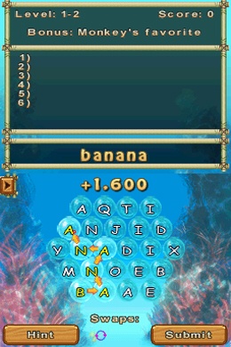 I also had some problems with the touch screen controls. It wasn’t in all the games, for example, controls in Water Words, Shell Game and Puffer Popper were fine. I did have some troubles in Coco Bowl and Jungle Jump. Like I mentioned earlier, Coco Bowl has extremely touchy controls, and it can be difficult to perfectly release the ball. As for Jungle Jump, it can be difficult to gauge the proper motion to make the monkey leap from one vine to the next.