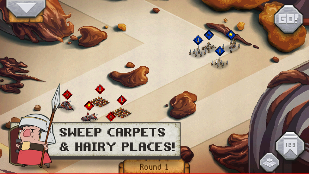 One should expect silly things in Witching Hour Studio’s Romans In My Carpet!. The turn based strategy game for smartphones features bedbug-sized Roman and Britannian soldiers vying for supremacy of new territory: A college dorm room.