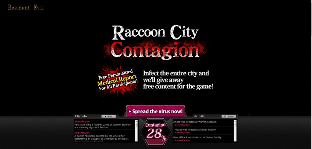 Capcom have unveiled a website for players to get “infected” with the T-Virus. This is a promotional campaign that tie ins with the upcoming Resident Evil HD Remaster. Why would you want to turn yourself into part of the undead horde? Once infection levels reach critical levels and the undead overrun Racoon City (… again), the website will unlock free content within the upcoming game. What that content is is a “surprise”. You can register here using email, Facebook or a Capcom account. You can also track the spread of the T-Virus in the map. Resident Evil HD Remaster will be out on PC, PlayStation 3, PlayStation 4, XBox 360 and XBox One.
