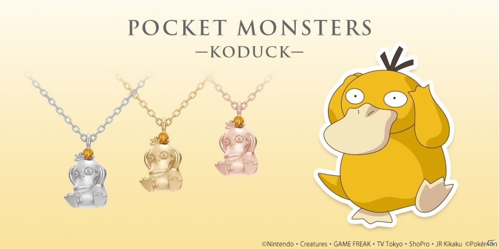 Japanese jewelry retailer U-Treasure is scheduled to release another line of Pokemon inspired necklaces, this line will be inspired by Psyduck. A total of four Psyduck necklaces are available to pick from, all ranging in price according to their material. Pre-orders are currently open, with the necklaces expected to ship in mid-July. [Thanks, Gamer!] This special limited release necklace by U-Treasure features a small cast of the psychic duck Pokemon Psyduck. Additionally, the necklace will have another unique detail found on the clasp. This detail being a small Pokeball shaped and styled link. The necklace is available in silver, gold, pink gold, and platinum. The silver necklace will cost ¥15,400 (or roughly $145), while the gold and pink gold versions will cost ¥99,000 (or $937). The platinum version is a bit more expensive, costing ¥110,000 (or $1041).
