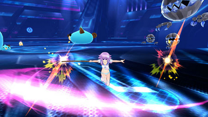 Tamsoft and Compile Heart have an action game Neptunia spinoff in the works. Ultra Dimension Action Neptunia U lets players bring two characters with them to slash through Dogoos. You can switch characters like Neptune and Noire in the middle of battle. The characters you pick will talk to each other too.