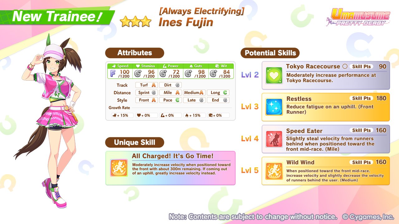 As for the new gacha banners in Umamusume: Pretty Derby, Ines Fujin and the Mr. CB SSR aren’t too exciting. Fujin is a new Front Runner who runs Mile and Medium Turf faces. Some of her more notable abilities are her Potential Skills Restless, Speed Eater, and Wild Wind and velocity-increasing Unique Skill All Charged! It’s Go Time. Meanwhile, Mr. CB is a Wit Support Card best for End Closers, due to it having the Daring Strike velocity skill for those racers, and it does have Specialty Priority as a Support Effect.
