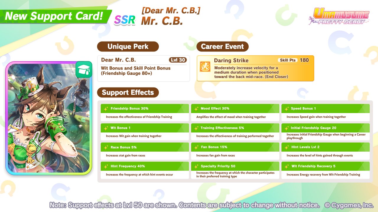 Umamusume: Pretty Derby is available on PCs and mobile devices worldwide, and the global version Champions Meeting PVP changes will take effect during the Gemini Cup when that starts on May 31, 2026. Ines Fujin and the SSR Mr. CB card appear today and join the general gacha pool after their banners end.