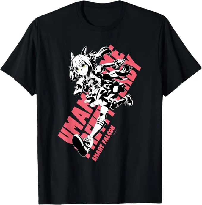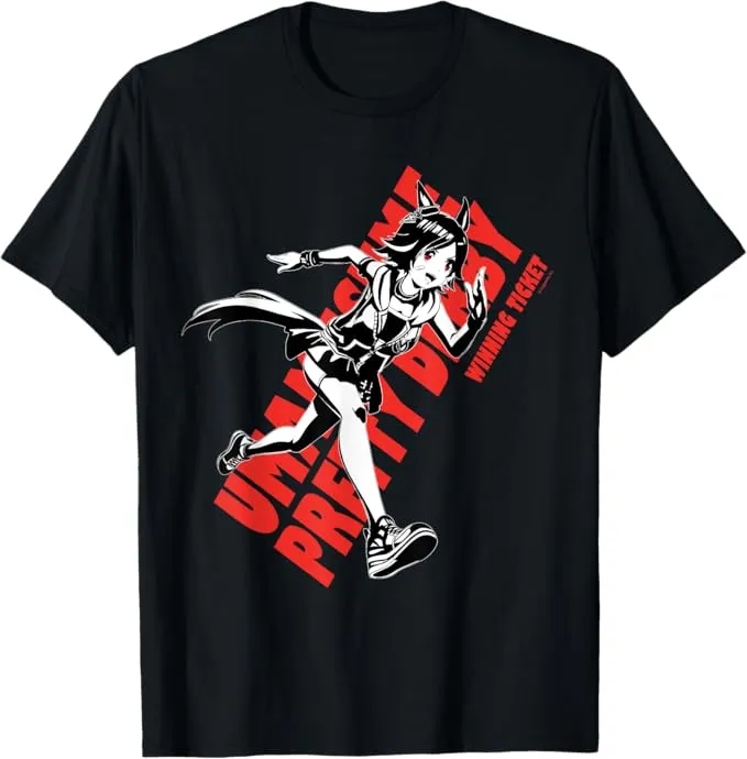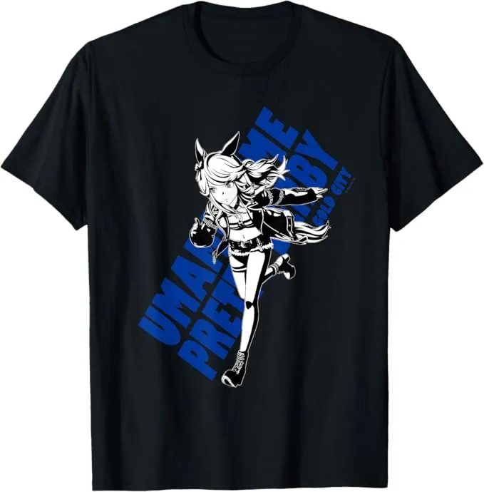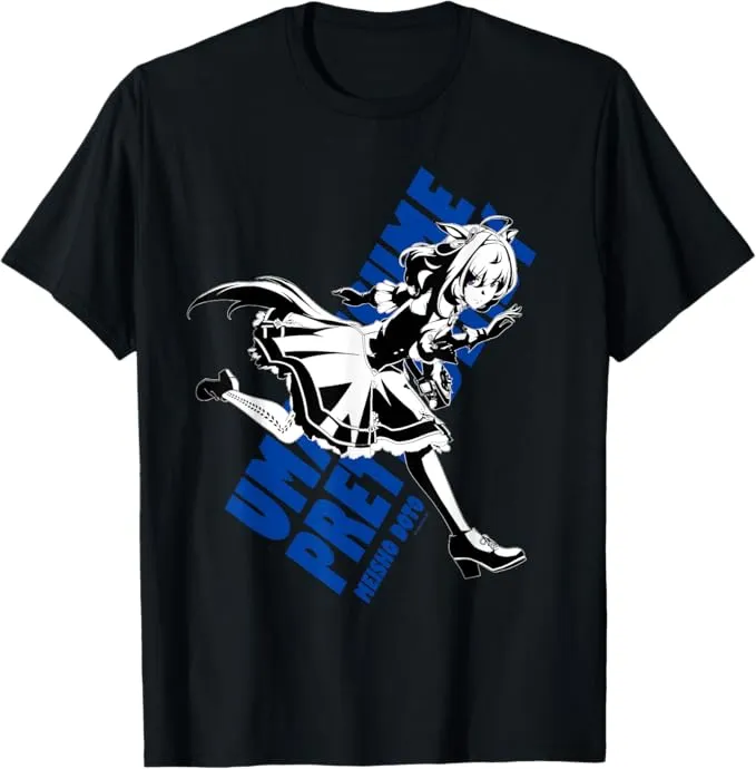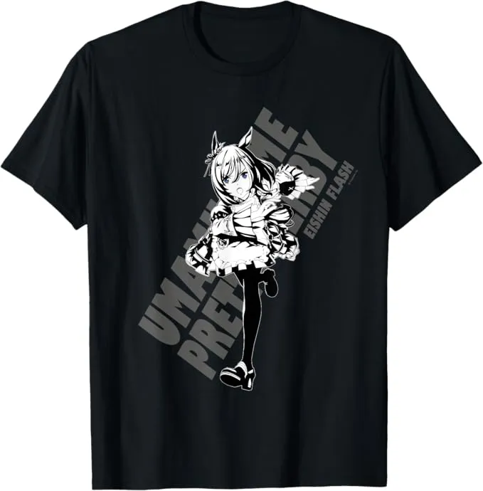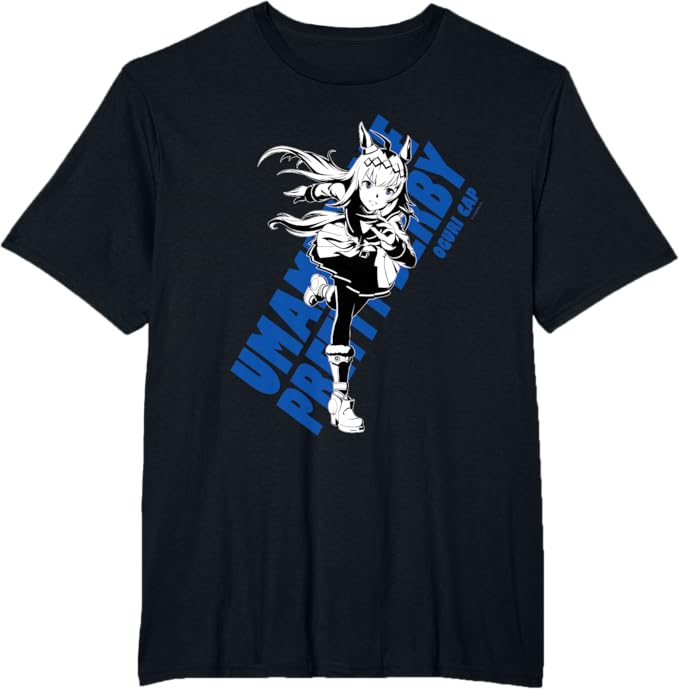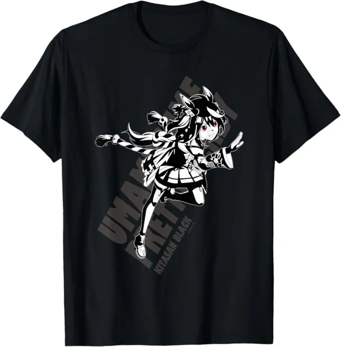 Here’s the full list of all the Amazon Merch on Demand Umamusume character shirts immediately available. Both men’s and women’s styles are available. Men’s appear in small through 6XL, with 2XL tall through 5X tall also available. Women’s can be found in XS through 6XL. Each one features the character in a black and white outline running in front of their name on a black shirt.
