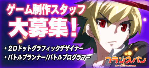Other positions in need are battle planners and battle programmers, but the recruitment appears to have ended over on the official website for Under Night In-Birth. French Bread was originally founded in 1995 as Watanabe Production. Perhaps they’re looking to make something on time for their 25th anniversary next year.