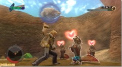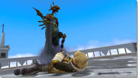 And now, for the best part. All the cool mid-air action sequences from the trailer are actually in the game in the form of quicktime events. These are called “playable events.” One example mentioned in Famitsu is that Layle is falling through the sky, surrounded by demons. Using the Wii remote, you need to shoot at them. There’s a scene in the trailer that has Layle trapping an airship in some sort of telekinetic field and flinging it downward…that’s probably a QTE, along with the caravan chase scene, too. What are the RPG elements in the game? By now, you can probably tell that Crystal Bearers isn’t turn-based. In fact, interactivity is the name of the game here. The idea was to design an open-ended game that wasn’t just fun to play, but also fun to watch. The game does retain certain RPG elements though. While there is no leveling-up system, the growth of Layle’s abilities is controlled using accessories and equipment. It also seems like there are “reactions” of sorts to be discovered by influencing various objects in the environment using your powers. An example of this is the scene involving the Cactus Jack look-a-like from the trailer. The various trailers and gameplay clips also hint at some sort of a “charm” effect by which you can make enemies do your bidding or make them grow attached to you. Is there other stuff to do in the game? It certainly seems like it. Chocobo-riding is present and accounted for, and we’re certain the open-ended nature of the game means there will be plenty of side-activities to pursue. There are platforming elements based around Layle’s gravitational powers, and we’ve already seen several examples of the demon reactions and someone humping a rock (thanks Volcynika) so…