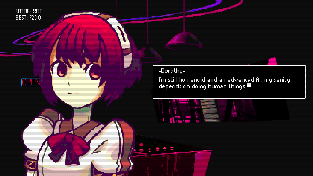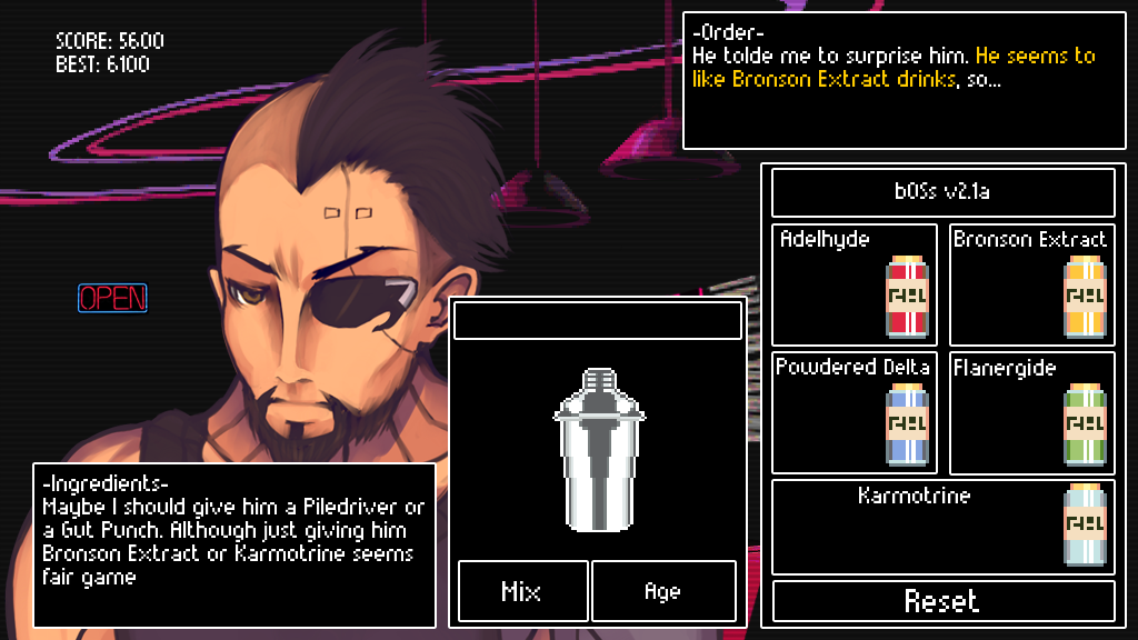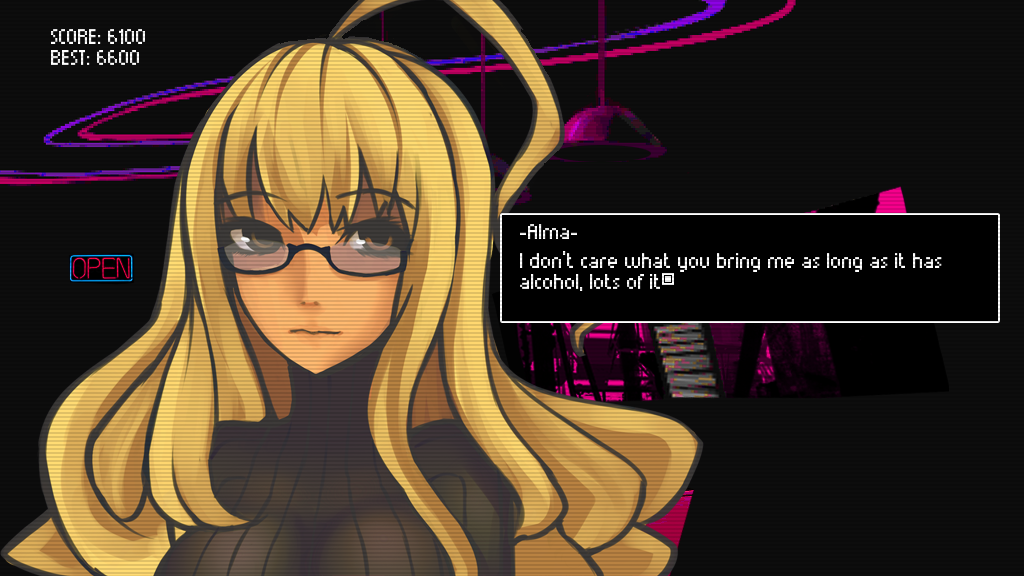 When you decided to enter the Cyberpunk Game Jam earlier this year, what was it about a cyberpunk bartending sim that jumped out at you? It wasn’t too hard to come up with the idea. When I read about this Cyberpunk Jam, I was like: “Hey, you know what would be cool? A game where you’re the bartender in a cyberpunk society, and you’re not the hard boiled hero or stuff like that. You just do your work while classic characters from cyberpunk tales tell you stories about life in dystopia.” Funnily enough, the game had to be based on some artwork but we ignored that and made this weird visual novel adventure thingy. The coolest thing about this approach to storytelling is that it can only be achieved in video games. Our main focus as developers is blending mechanics and story in a way that one could not exist with the other so the gameplay in VA-11 HALL-A, albeit simple, does have a strong impact on what you see on screen. Only in video games can you be a bartender on a Blade Runner-esque world! Where do you look for influences when coming up with the setting and characters in VA-11 HALL-A? Main influences are the aesthetics of old PC-98 games for a reason beyond “being retro”—it was because it looks futuristic. In the ‘70s, ‘80s, and ‘90s, the world was under the impression that Japan was going to take over with its superior technology. Japan was truly living in a cyberpunk society, and as such all the cyberpunk works that were born since then portrayed a society with strong Japanese influences. This game is more of a product of that setting. We wanted the game to look like it came from a parallel universe where Japan did conquer the world through capitalism and technology. Other influences come from rather obvious sources: Blade Runner, Neuromancer, Ghost in the Shell, and the classic Bubblegum Crisis. This is a huge combination of everything awesome about cyberpunk but condensed in a setting you almost never get to see in similar works in this genre. What if instead of following Deckard, you are actually the Japanese man serving ramen on the street? That’s what we are going for. I guess vaporwave also influenced the aesthetic a bit since that genre is also a product of a setting. For the music, Michael’s a big, BIG Shin Megami Tensei fan and all things cyberpunk so he was the perfect man for this job. His main influences for VA-11 HALL-A were awesome people like Kenji Kawai and old PSX soundtracks. What did you like about the jam version of VA-11 HALL-A that had you decide that it needed to be a bigger game? We wanted to see more characters and wanted to hear more stories about this world we built based on what we love the most about cyberpunk, while also looking for a good challenge design-wise… like, it’s not easy at all to make a fun game with just drag and drop. You need more going on to engage the player so we try our best on all aspects to make a compelling piece. You could say Papers, Please serves as a good starting point for this. In the prologue that you’ve released, there’s a chance to alter a character’s responses by the drinks you mix for them. Do you take this further, beyond simply reaching a high score, in the full version—perhaps making moral choices regarding alcohol content in the drinks? If not, did you ever think about this, or want to do it but haven’t been able to? That’s a secret! But, what I can say right now is that you’ll be able to reach at least 7 different endings based on how much you get to know the characters. Sometimes, they will ask for whatever drink, but because you know that character very well you will know what drink they want in that exact moment. It’s a very personal experience. The “waifu” bit is based in this interaction. You see the classic otaku getting strongly attached to a character and we want to achieve this through characterization and not so much through the looks, although there’s a fair share of beautiful people. Who are your favorite characters in VA-11 HALL-A and why? If any of them are only in the full version of the game, what kinds of conversations can we expect from them? My favourite character is Alma. She’s what you might call a “Christmas Cake” and the reasons I like her so much are … well, spoilers but what I can say is that you can expect all kinds of stories about bad relationships and how pursuing your dreams can harm the ones you love. She has her own route in the full game so please look forward to her! she was also present in the prototype. Fernando’s favourite character is Dorothy the robot sex worker. He truly enjoys writing odd characters and in his words: “She has one of the most well-defined personalities and I feel she’s a different kind of independent female. It’s also fun to see the range of reactions people get from her.” That last point is pretty funny, some got the creeps from her while others praised her characterization in the prototype. She has her own route in the full game so expect a lot of talk about her.