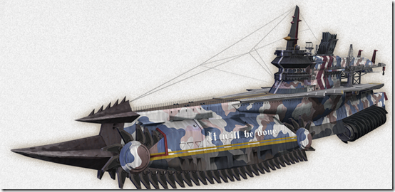 The Centurion is a cruiser built by Edinburgh Navy in complete secrecy to clinch decisive battles. Three cruisers of this model were created, and the Centurion, which Claude and his squad embark on, is the second of them. It was designed to travel through ice fields, so it has a giant ram on the front. At over 230m long, the cruiser travels on the ice as if it were a tank. This giant cruiser uses technology provided by the United States of Vinland to travel on land, and the details are top secret on a country-level. Ship Orders