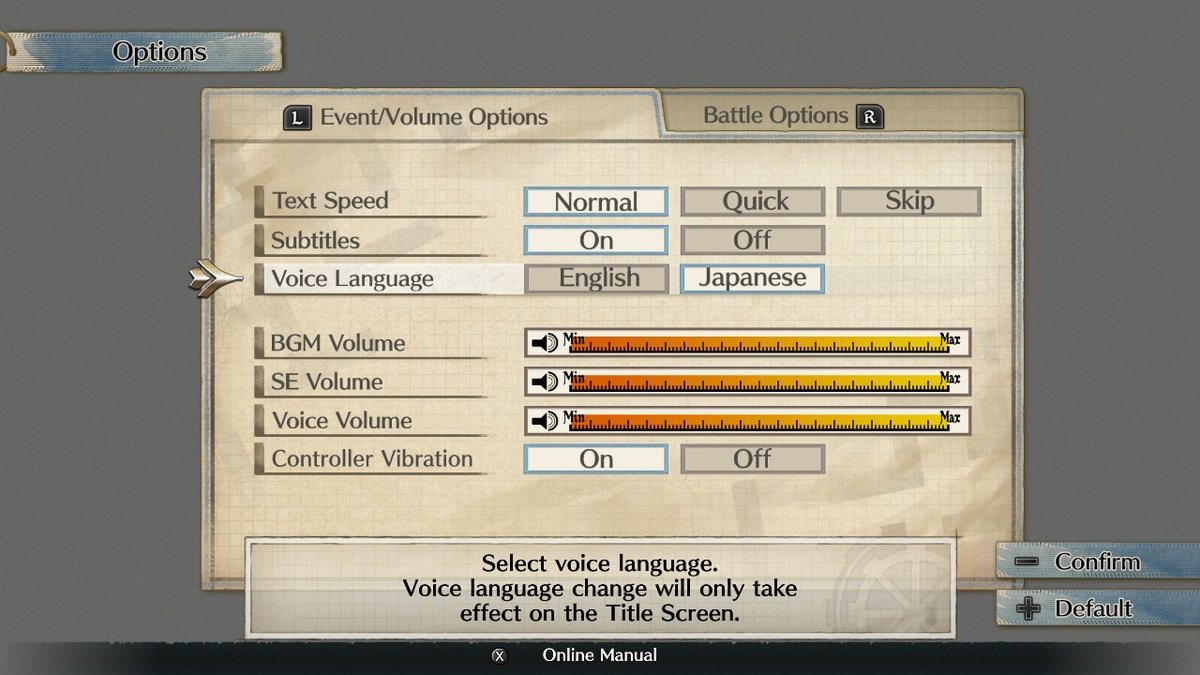 The Nintendo Switch version of Valkyria Chronicles 4 is slightly different from the other versions, in that people who want Japanese voice acting as an option need to download a free add-on. (It is automatically included in other versions.) After going to the eShop and grabbing the free DLC, people can then go into the Event/Volume Options menu and choose between English and Japanese voice language.