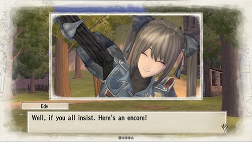 All of the Selvaria missions are much easier than the other self-contained story. Edy’s Mission: Enter the Edy Detachment is hard. You know the Nintendo hard saying? It’s worse than that. Back when Valkyria Chronicles was first released, I only beat this mission once, and I feel like it only happened because I got lucky. (To be fair, I didn’t attempt it too many times, as I’m not a fan of Edy.) It’s a test of wills. You first have to hold the enemy back for three turns, as more constantly show up, then get Edy to a specific spot on the map while also keeping Imperials out of the space you were protecting before 20 turns pass. You aren’t even rewarded for your efforts with equipment, though there are four possible ending scenes. (I’ve only seen the C and D ranks. You don’t want to get the D rank ending.)