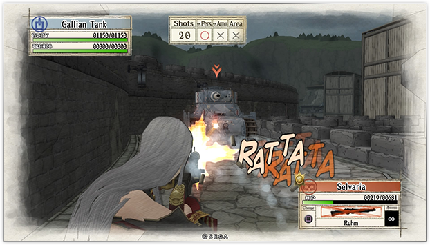 I recommend starting with Behind Her Blue Flame, mainly because Selvaria is an interesting character, this campaign offers branching battles and a bonus mission, and Ruhm. It’s available under Extras as its own, separate campaign. It’s also quite challenging. People begin with Selvaria, Johann and other, basic units in Assault on Ghirlandaio. Depending on what you accomplish in this battle you unlock one of two follow-up missions. Do what you’re told to head to Rout of the Gallian Forces or destroy the tank along the way to trigger Silencing the Artillery. (I find Rout of the Gallian Forces to be the easier of the two, though they’re both difficult.) Completing the first mission and one of the two second ones will unlock Ruhm, Selvaria’s submachine gun. It has aim equivalent to a sniper rifle, incredible range and massive power. It’s perfect for your favorite Shocktrooper, like Lynn.