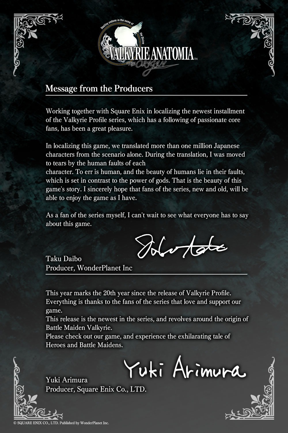The release date for Valkyrie Anatomia: The Origin, the Valkyrie Profile has been revealed. People outside of Japan will be able to begin playing the mobile game on April 4, 2019. As for the release date, the WonderPlanet press release noted that the number four is associated with death in some countries said that is why April 4th was chosen as the Global and Traditional Chinese release date for the Android and Apple iOS game. As a reminder, a second pre-registration event is being held for Valkyrie Anatomia: The Origin. On March 27, 2019, the official Facebook page revealed that the 50,000 tier had been reached. This means every new player will get 10 Large Stamina Potions and 10 Silver Weapon Creation Tickets. In addition, a message from Square Enix’s Yuki Arimura and WonderPlanet’s Taku Daibo, the producers of Valkyrie Anatomia: The Origin, has been released.