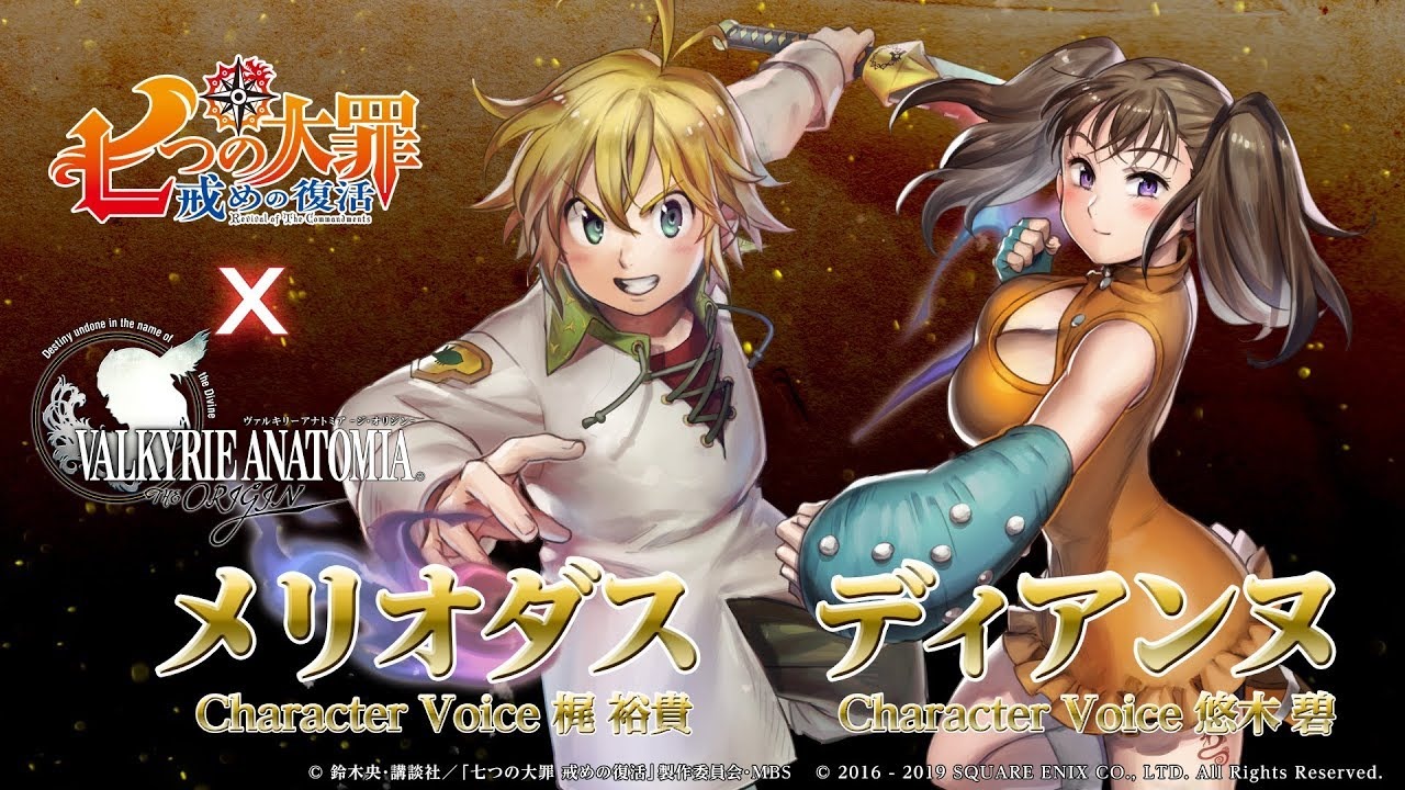 Square Enix revealed the very first collaboration event in 2019 for its smartphone game, Valkyrie Anatomia, with a crossover featuring Meliodas and Diane from The Seven Deadly Sins by Nakaba Suzuki. Here’s a first look at Meliodas and Diane made with 3D models for the game and busting out some flashy moves. Meliodas (CV: Yuki Kaji)