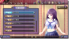 The Communication Room will let you switch out costumes and looks out of four categories: Clothes, Underwear, Hairstyle, and Accessories (which have three slots.)