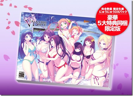 You can also “Contact” with the characters in the Communication Room, where you use touch reaction features to destroy their outfits and increase their experience points. Getting experience points will also increase their “Boob Rank” as well.   valkyrie-drive_150803 Similar to the Senran Kagura series, Valkyrie Drive: Bhikkhuni is also getting its own “Nyuu Nyuu DX Pack” limited edition, which features a special box, a visual book, character illustrations and details, original soundtrack, a drama CD, and an original packaging for the set, all for 8,480 yen plus tax.   valkyrie-drive_150803-2 First-print copies of the game will include the “Paradise Swimsuit DLC Card” as an extra bonus. This includes three swimsuits based on Valkyrie Drive’s artificial islands and mermaids as a motif.   Valkyrie Drive: Bhikkhuni will release in Japan on December 10, 2015 for PlayStation Vita.