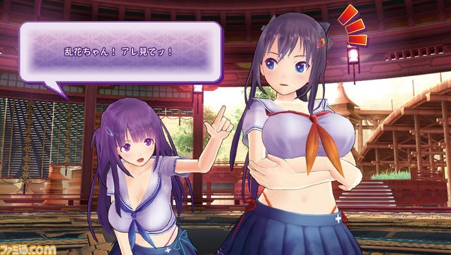 The two main girls are Rinka Kagurazaka in blue and Ranka Kagurazaka in red. The more these two fight together as a pair, the more their “Synchro Rate” increases, which will grant a change in their weapons and combos. They will also share various interaction in the middle of the fights.