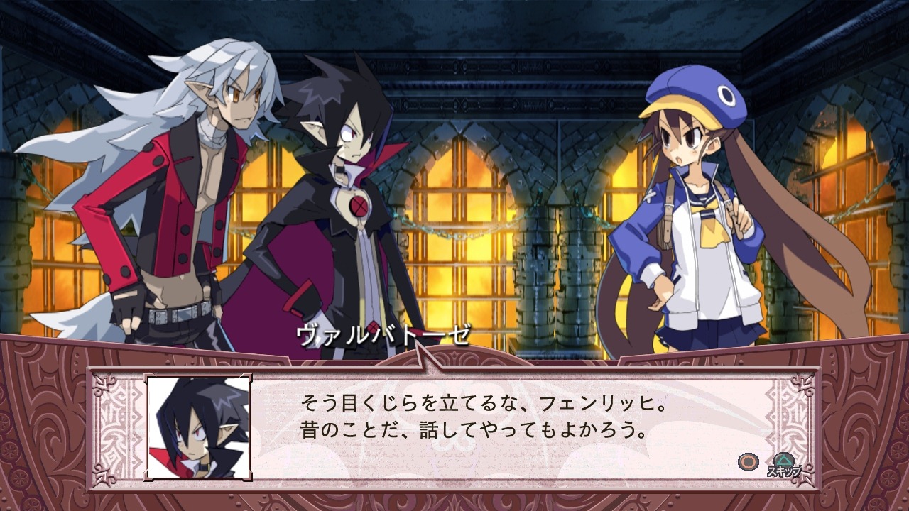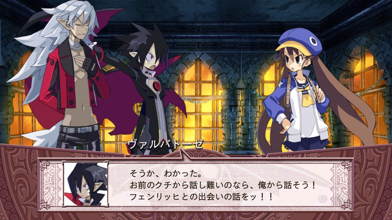 A downloadable scenario will let players control the all-powerful Tyrant Valvatorez. This character has his own moves and a storyline where you see a different side of the lead character. You know, the Valvatorez before he liked sardines. Fenrich, his loyal werewolf follower, plays a key role in the Tyrant Valvatorez chapter.