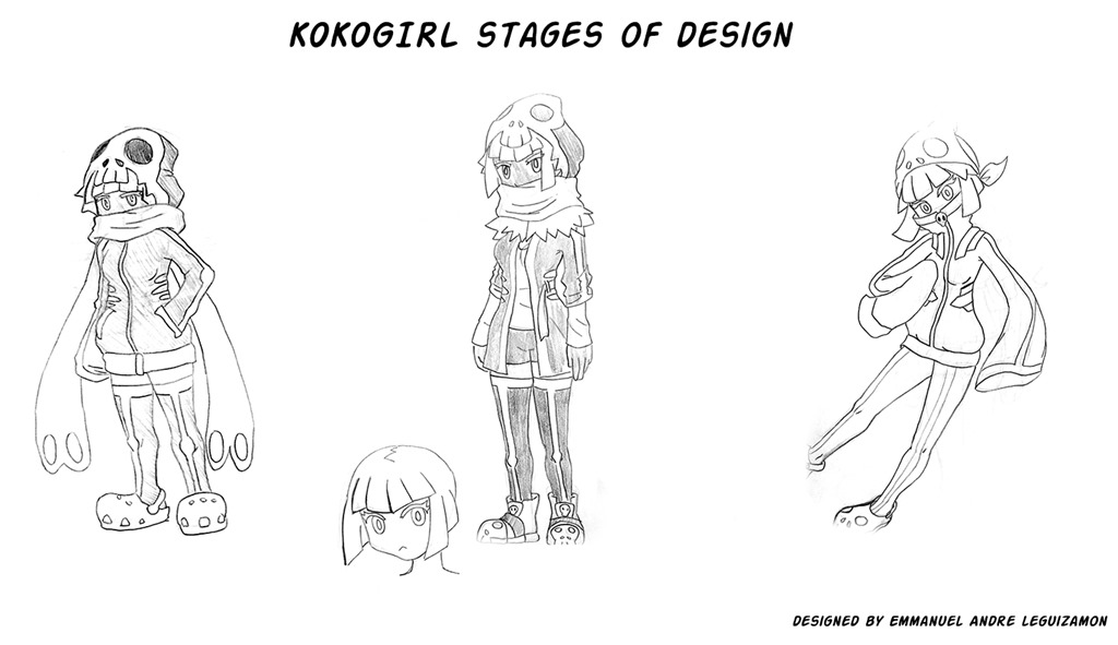 It all started with the idea of "I want to make a simple game with cute anime girls.". So I drew a sketch for the protagonist (named Speedy Star, initially), and I started playing with colors. Orange, that’s her color. But it doesn’t go well with Soda, right? It goes better with orange juice! That’s where story started taking form.
