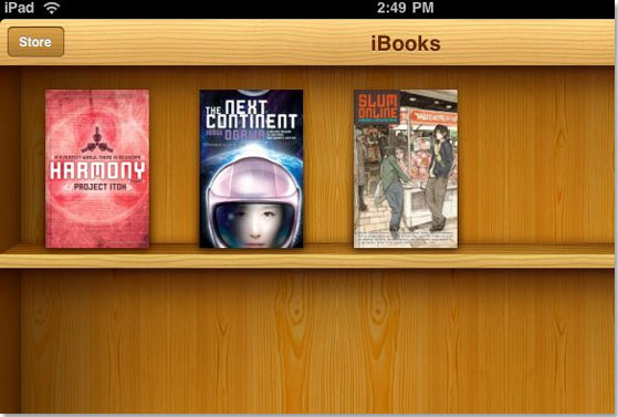 However, according to the publisher, their line-up of eBooks should be hitting the Apple Bookstore “within weeks.” Harmomy, The Next Continent, and Slum Online will be among the first Haikasoru novels to go digital.
