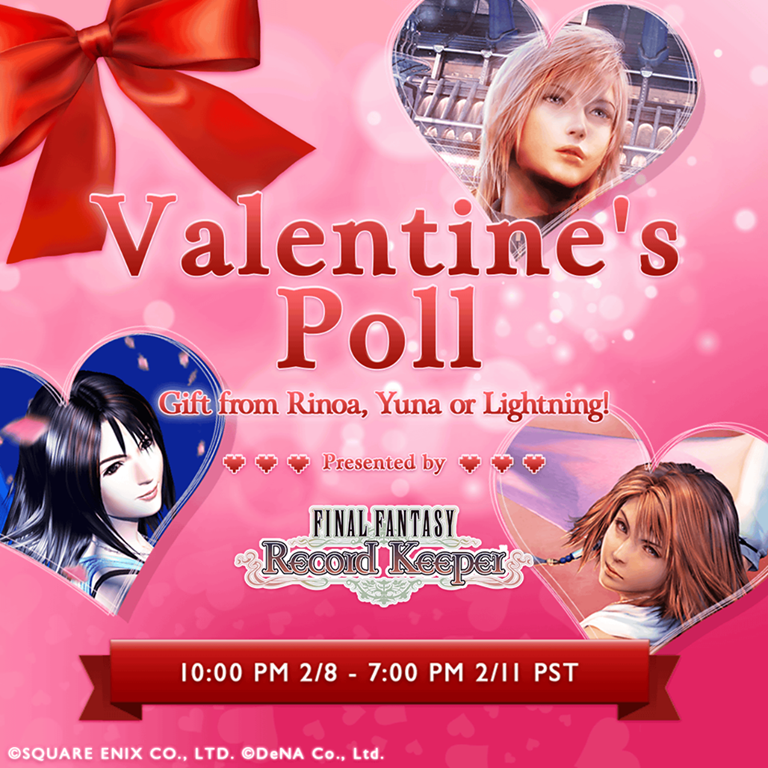 Square Enix and DeNA are asking players of Final Fantasy Record Keeper to vote on a “Valentine’s Poll.” It’s open until February 11th at 7pm PST.