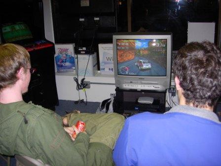 Every month, people from the tri-state area travel to his shop to trade, buy, sell, and play video games with each other. He stocks imports and classic games of all kinds and even has his own MVS arcade machine that he sets on free play. Nick even holds a tournament every time with multi-player games of his choosing (sometimes to comic effect). The gathering lasts usually until about 2:00 AM and Nick provides food and drinks for everyone. I had a great time going to it this weekend and I thought that I’d share with you something that I do as an active participant in gaming culture.