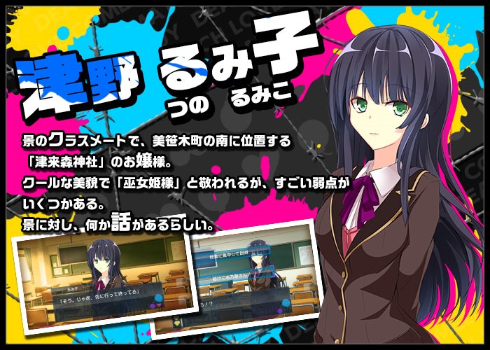 Rumiko Tsuno is Kei’s classmate. She’s a princess of a well-off family and has a cool personality, but she is said to have a number of strange weaknesses. She seems to have something she wants to talk to Kei about…