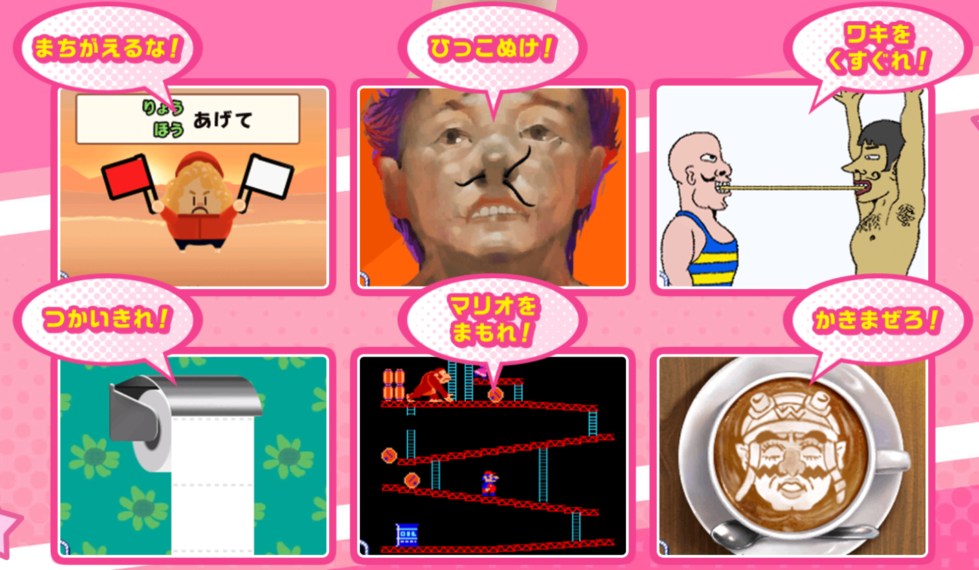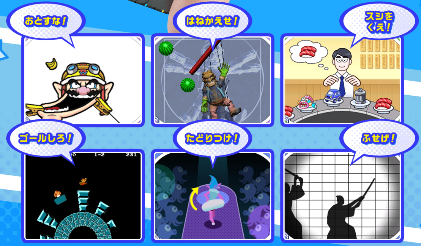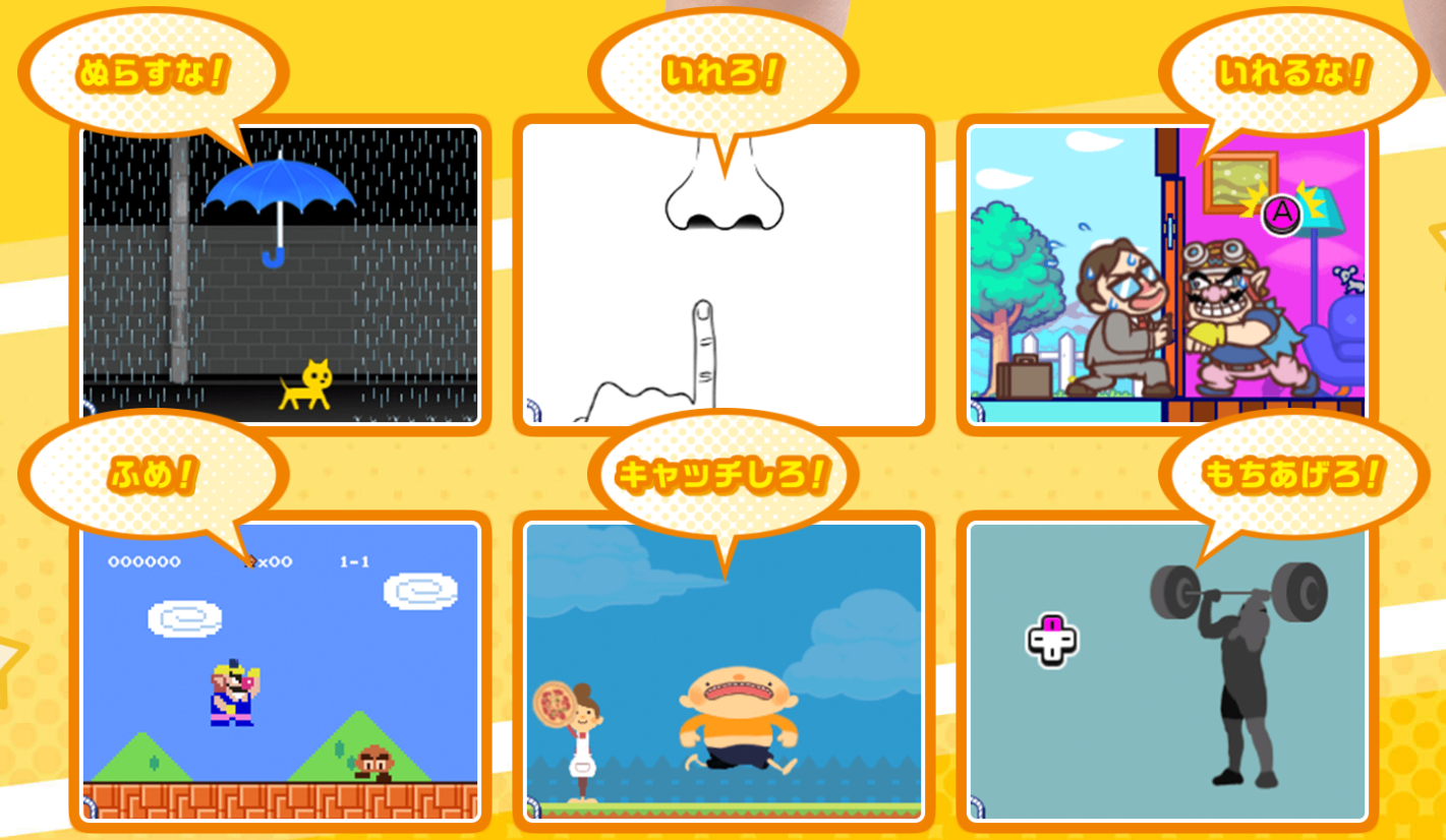 A master of martial arts, and Young Cricket’s sensei. They are currently training together. He is really strong. Microgames The microgames this time come from various games in the series, and have various gimmicks to them, from touch controls, to blowing into the microphone. Button Microgames