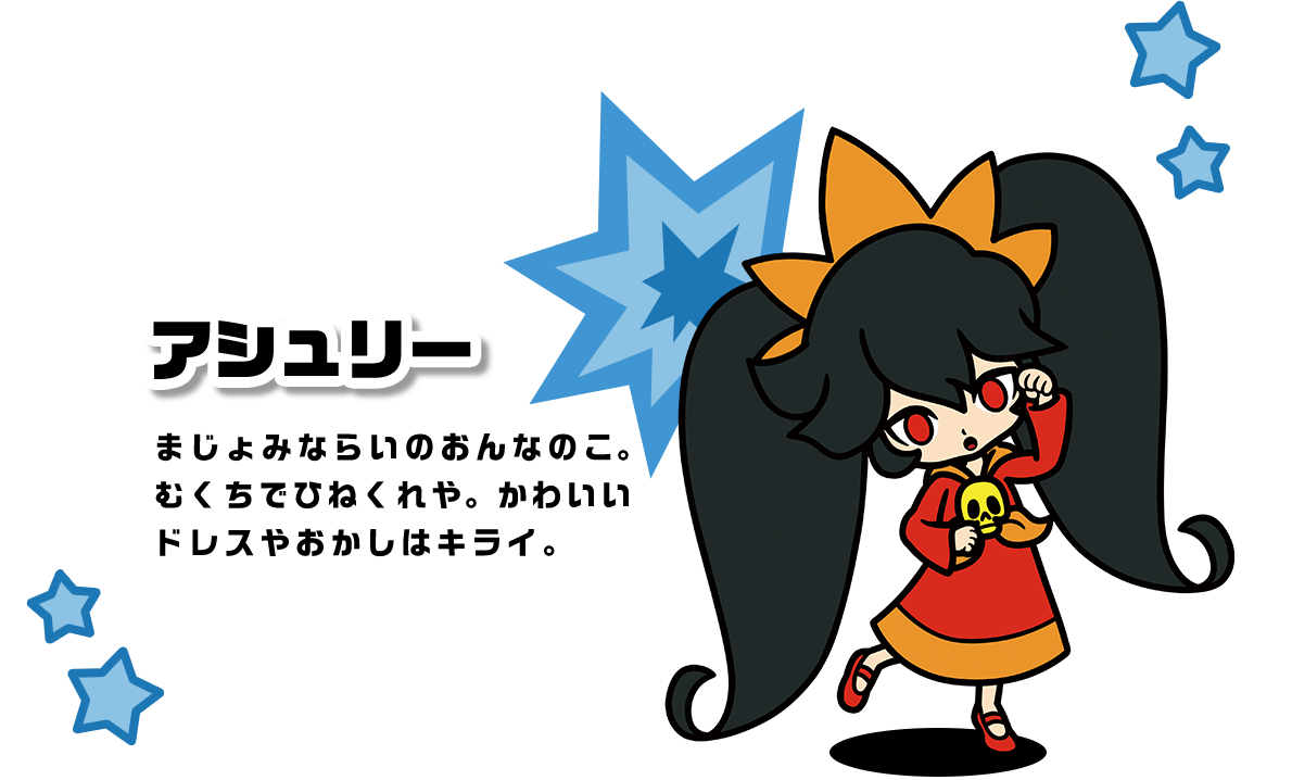 A young witch-in-training who doesn’t show much emotion, but is quite the sourpuss. She hates sweets and cute dresses. Jimmy T.
