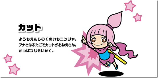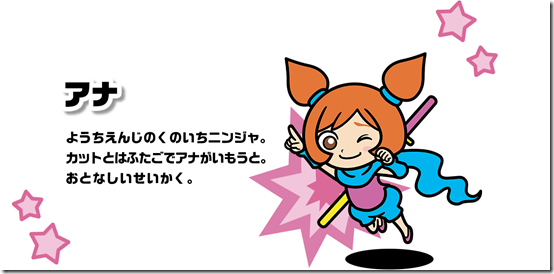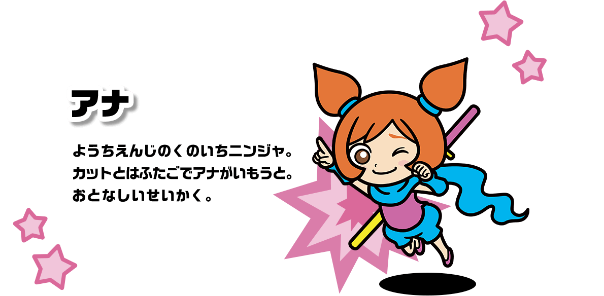 A kindergarten-aged ninja. She and Ana are twins, and she’s the livelier one of the two. Ana