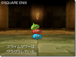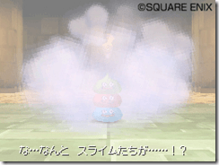 Square Enix sent out a batch of new Dragon Quest IX screenshots focusing on the game’s monsters. One of them is the lesser cousin of the King Slime, the Slime Tower. When three slimes join forces they transform to a wobbly mesh of multicolored goo.