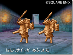 Haniwa Knights are an amalgamation of a horse and a clay knight statue used as a sacrificial offering for a king. Since the Haniwa Knight is made out of two monsters it has two kinds of attacks. The knight can toss a lasso and the horse breathes fire on the party.