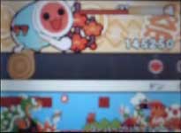 Now that I gave Taiko no Tatsujin DS a spin here’s a look at one of the neat additions, the Super Mario Melody. When you do well in Taiko no Tatsujin dancing dogs and drums cheer you on. Things are a little different in the Super Mario Brothers melody where Mario in 8-bit form jumps to your drumming skills. The other song with retro characters is the Namco Melody remix, which brings Mappy back. Remember Mappy the mouse?