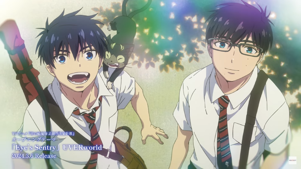 Aniplex has uploaded the opening song and sequence for Blue Exorcist: Shimane Illuminati Saga. The opening song for this series is UVERworld’s “Eye’s Sentry.”