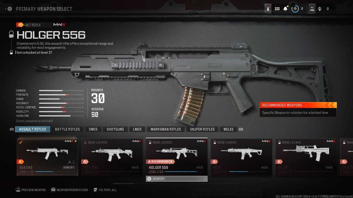 Finally, there is the Holger 556. According to its item description, it gives. “exceptional range and reliability for most engagements.” I feel this weapon combines the long attack range of a sniper rifle and the close-range impact of other machine guns. While there is no single gun that is universal in its combat value, this is as close as one can get. The best builds for this weapon will take away what little recoil it has to turn it into a precise, long range powerhouse. Players unlock this gun at level 37.